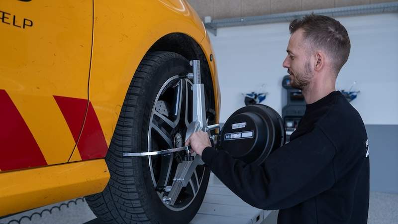 - Fastgørelse af udmålingsudstyr: Vi monterer specialudstyr på bilens hjul, som måler hjulenes vinkler i forhold til hinanden og bilens chassis.